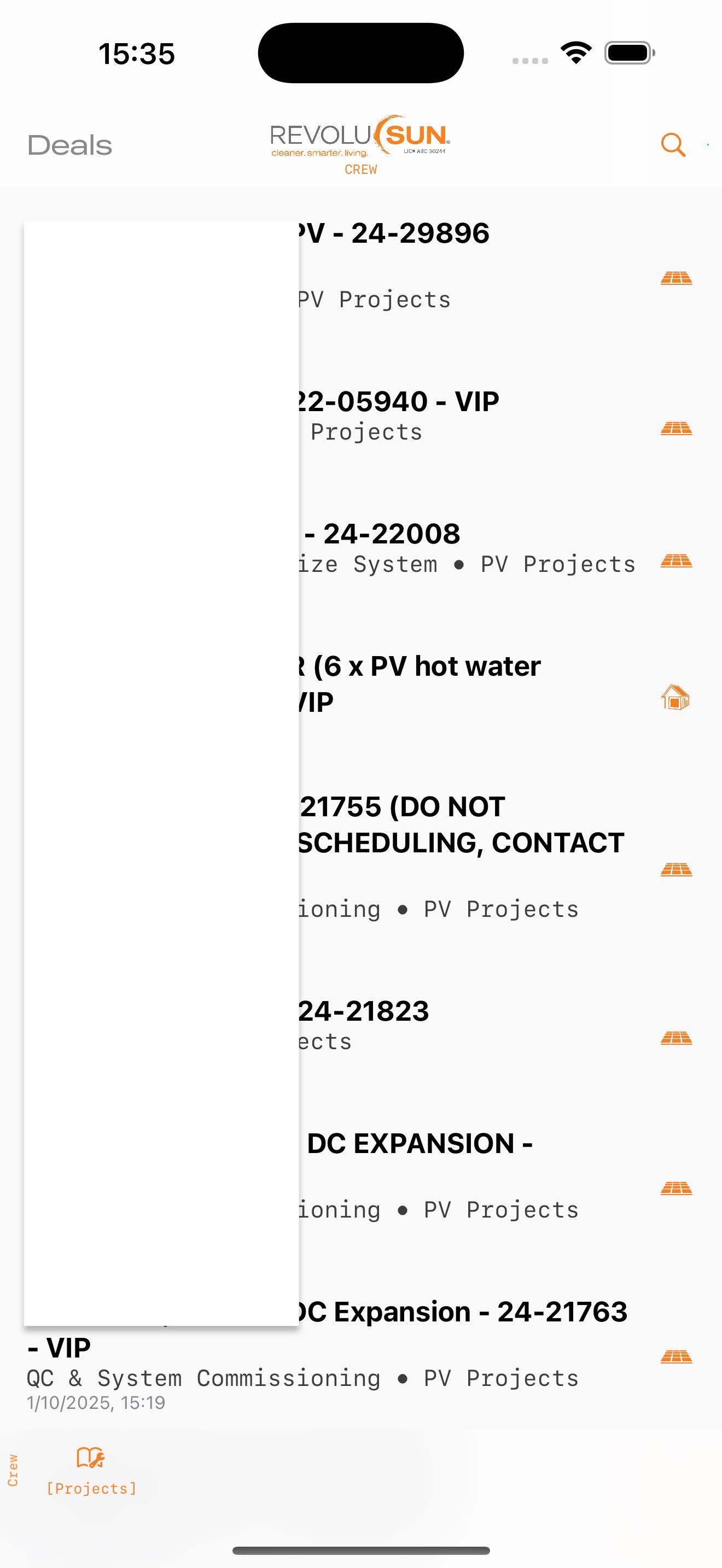 Type in either the project number, customer name, or the full name of the project.